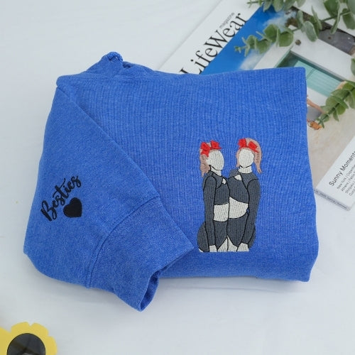 Custom Besties Group Portrait Sweatshirts - Best Friends Embroidered Varsity Hoodie - Friendship Squad Gift EST Date