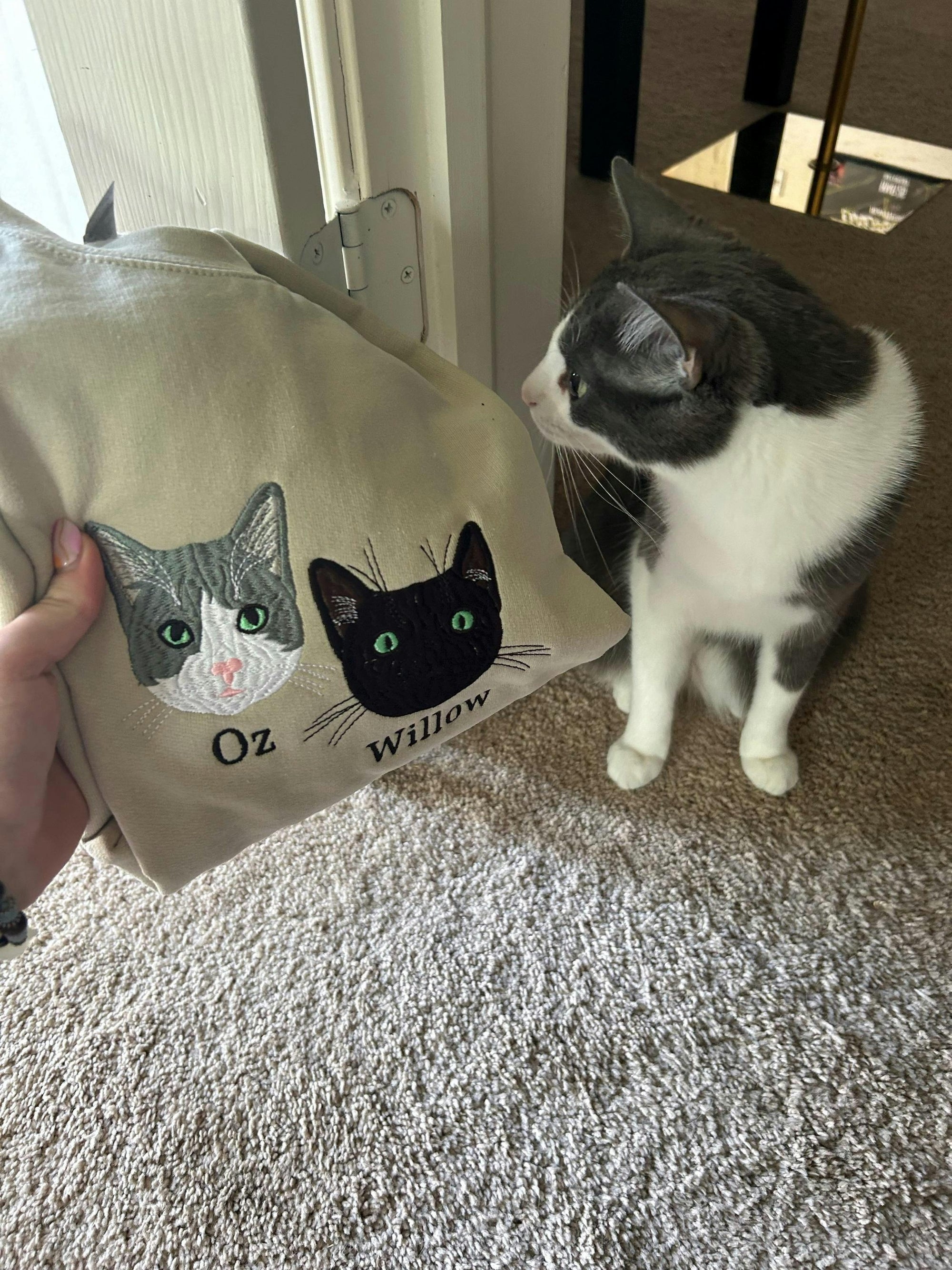 Custom embroidered cat lover hoodies — ultra-soft fleece, true-to-size fit, made to order for feline fans.