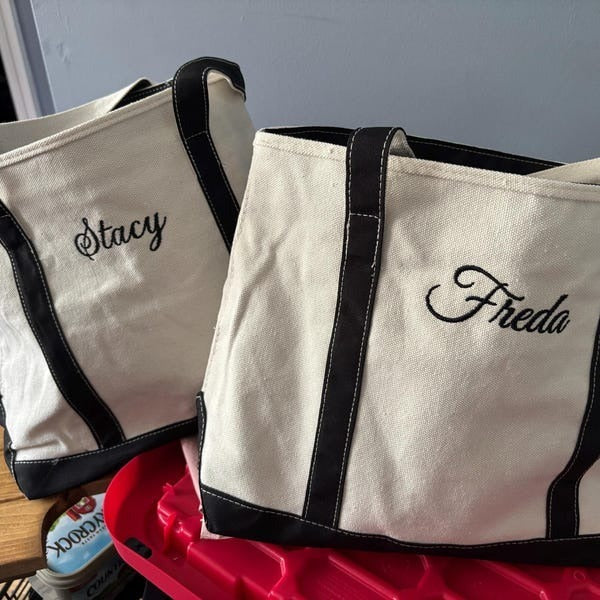 Personalized embroidered tote bags designed for daily use — durable canvas, elegant stitching, and timeless style.