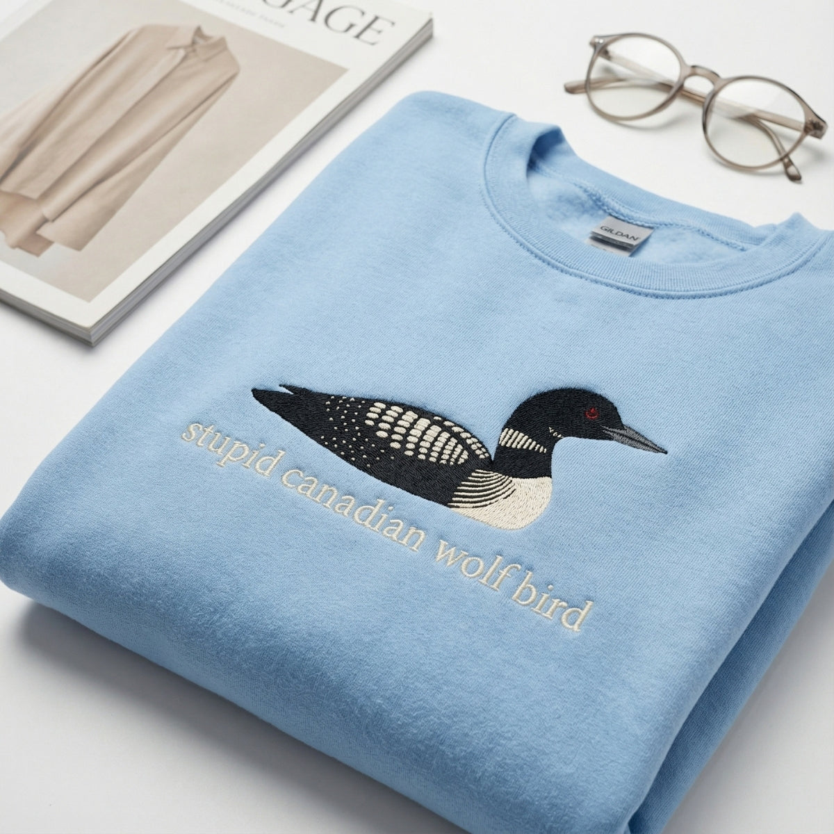 Show off your bold humor and fandom pride with this Custom Embroidered Stupid Canadian Wolf Bird Sweatshirt. Featuring a quirky wolf bird character stitched with expressive details, this design brings playful sarcasm and standout personality to your everyday wardrobe. Perfect for Team Hollanov fans, this hoodie is cozy, eye-catching, and full of character—ideal for casual wear, lounging, or gifting to friends who love unique embroidered designs. Comfortable, durable, and unapologetically fun, it’s a sweatshirt made to turn inside jokes into wearable art.