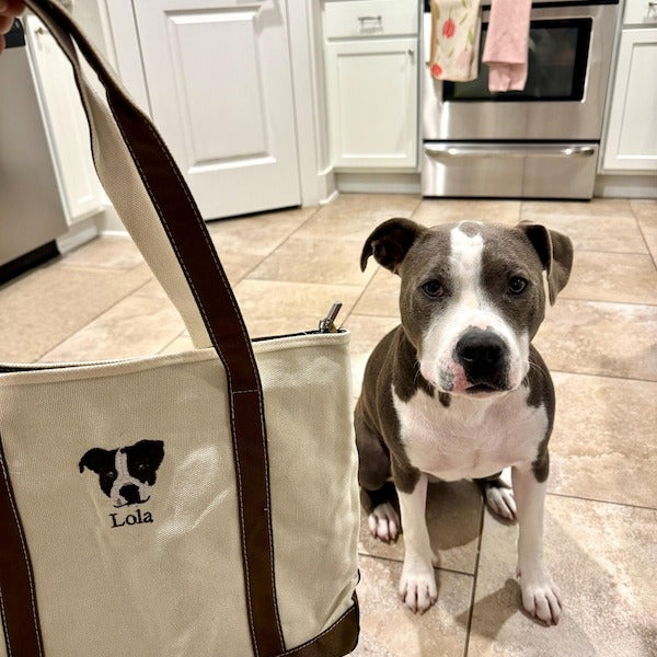Pet Portrait Custom Tote Bags - Dog Face Embroidered Canvas Bag - Personalized Pet Memorial Gift