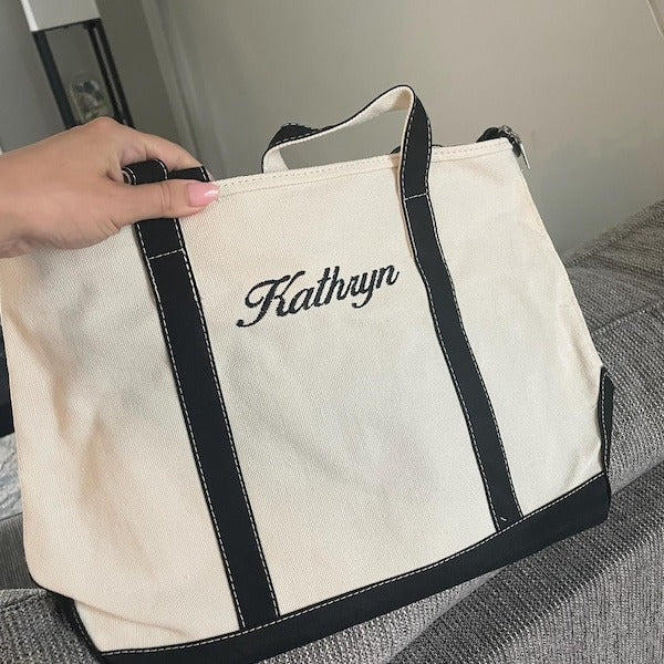 Personalized embroidered tote bags designed for daily use — durable canvas, elegant stitching, and timeless style.
